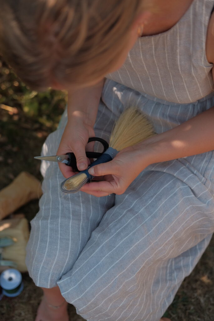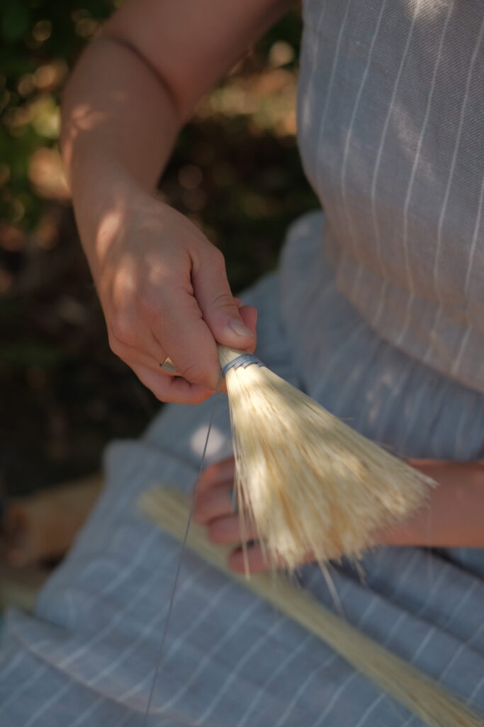 Gennem workshoppen vil Lisa gennemgå forskellige traditionelle bindeteknikker og stilarter, såsom ”hawks tail” eller ”turkey wing”, og der vil blive arbejdet med både Broomcorn og Tampico fibre. Man er også velkommen til at medbringe egne materialer til afprøvning – f.eks. gedehår eller hestehår, eller hvis du har vævede bånd som du vil have hjælp til at indbygge i din kost.